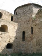 Площадь этого двора несколько больше трех соток, толщина стен - 5 м. Двор почти полностью был застроен. В каждом углу двора находилась круглая башня две со стороны лимана, боевые (одна из них разрушена полностью). Вторая, сугубо боевая, сохранилась хорошо (6)