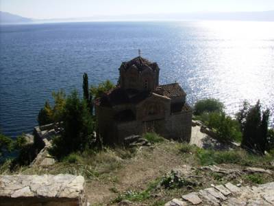 Охридское озеро, когда-то на его берегу епископ Охридский и Жичский свт.Николай (Велимирович) писал знаменитые "Молитвы на озере". В храме, изображенном на фотографии сейчас музей