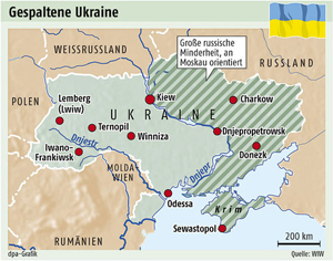 6 мая 2008 года немецкое издание "Frankfurter Rundschau" в своей статье "Споры о НАТО раскалывают Украину" отметило, что "сегодня уже звучат призывы об отделении "русских" частей страны. Речь здесь, наряду с Крымом, идет о городах-миллионниках на востоке страны: Донецк, Харьков и Днепропетровск являются по преимуществу русскоязычными".