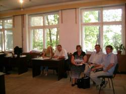 Перед заседанием Одесского окружного административного суда. Слева за столом - представители Черноморской и Коминтерновской администраций. Справа – секретарь Одесского обкома ПСПУ Ольга Соловенко, председатель постоянной комиссии Одесского областного совета по вопросам прав человека, информации и свободы слова, депутат от Блока Витренко Валерий Сергачев, член ПСПУ Геннадий Кучеренко.