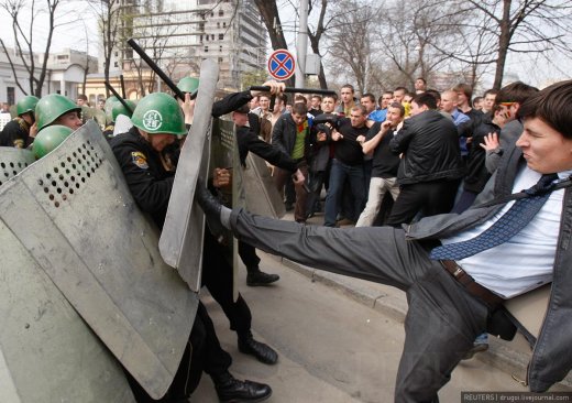 Посольство России в Молдавии заявляет, что среди молодежи, участвующей в беспорядках в Кишиневе, были боевики, под влиянием которых толпа начала штурм правительственных зданий.