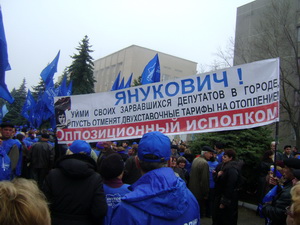С такими плакатами и обращениями вышли жители города Белгорода-Днестровского на субботнюю встречу с кандидатом в президенты Украины Виктором Януковичем. Ожесточенная борьба жителей города против двухставочных тарифов на услуги централизованного отопления, которая продолжается в городе вот уже на протяжении более года, выплеснул