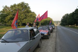 Сегодня депутаты Блока Наталии Витренко, активисты антиНАТОвского движения из партий ПСПУ и "Киевская Русь", женской организации "Дар жизни" провели автопробег по дорогам Новороссии. Машины, украшенные антиНАТОвскими лозунгами, партийными флагами, проехали от Одессы до Широколановского полигона с остановками в Сычавке, Коблево и