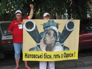 Сегодня, 13 июля 2010г., с 8-ми утра Армянский переулок в Одессе заняли активисты Прогрессивной социалистической партии Украины, Партии "Киевская Русь" и женской организации "Дар Жизни". Участники антиНАТОвского пикета встречали непрошенных гостей речёвками и транспарантами с лозунгами : "Yankee Go Home!", "Одесса обвиняет НАТО", "НАТОвській піст – ГЕТЬ з ОДЕСИ!", "Приказ для НАТОвских солдат: засуньте бомбы себе в зад!", "Нет СИ-Бризу!". Бойцы антиНАТОвского сопротивления дружно скандируют НАТОвцам и их обслуге: "Катись, НАТО, в Сомали и там с пиратами бои веди!", "Убирайтесь, иностранцы, НАТОвские засранцы!". Акция продолжается.