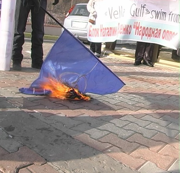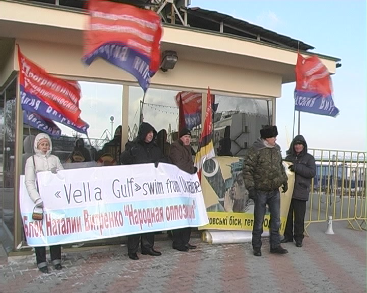 31 января, невзирая на необычно сильный для Одессы мороз, активисты ПСПУ и партии "Киевская Русь" пикетировали заход НАТОвского ракетного крейсера "Vella Gulf" ВМС США.