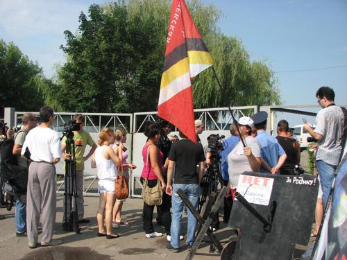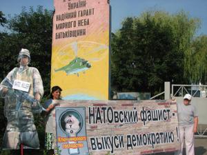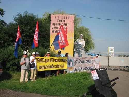 АнтиНАТОвцы сегодня возле центрального аэропорта провели митинг "НАТОвский фашист- выкуси демократию!". Акция была посвящена не демократическому проведению учений, ограничению доступа на учения представителям СМИ и депутатам областного совета На митинге выступили: депутат Донецкого областного совета, секретарь Донецкого обкома ПСПУ Л.П.Каёткина, депутат Донецкого городского совета, секретарь Донецкого горкома ПСПУ Н.А.Заречная, депутаты Одесского областного совета В.Д.Гайворонская, и П.И.Ксензицкий.