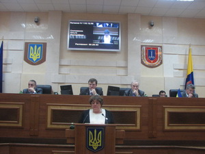 С таким проектом решения выступила перед Одесским областным советом фракция Блока Наталии Витренко "Народная оппозиция". Проект решения докладывала председатель фракции Ольга Соловенко. Позиция витренковцев была поддержана 83 из 90 присутствующих на сессии депутатов. Конфликт между строителями и жителями с.Усатово вызвал обеспокоенность у депутатов областного совета, как в связи со случаями физического противостояния между органами правопорядка и жителями села Усатово, так и в связи с тем, что ЕБРР предупредил НЭК "Укрэнерго" о возможном прекращении финансирования проекта, что может вызвать нарушение энергоснабжения области. Принятое решение четко обозначило позицию областных депутатов в отношении того, что строительство высоковольтной линии на территории вблизи жилых домов ведется незаконно, в связи с чем депутаты потребовали от КМУ создать правительственную комиссию, которая обеспечила бы своевременное строительство линии вне границ поселка Усатов . Кроме того, депутаты потребовали от заказчика строительства, Национальной энергетической компании (НЭК) "Укрэнерго", прекратить все гражданские и уголовные дела в отношении жителей Усатово , которые защищали свои конституционные права и обратились к жителям с.Усатово прекратить противостояние с силовыми органами.