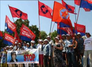 14\07\07 пикетирование полигона «Широкий лан» Николаеве. Посланцы Львова, Донецка, Житомира, Сум, Одессы, Николаева и других городов Украины, приехавших на полигон Широкий Лан заявить волю подавляющего большинства населения страны, которое не согласно с внешнеполитическим курсом президента и премьера по втягиванию страны в НАТО.